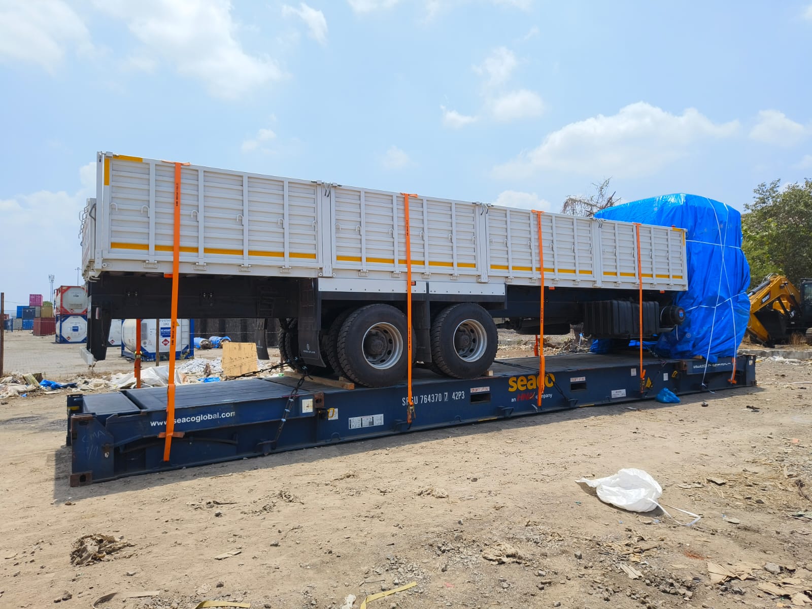 3. March 2025 : 5 trucks of 12 meters long from India to West Africa on FR conytainers
